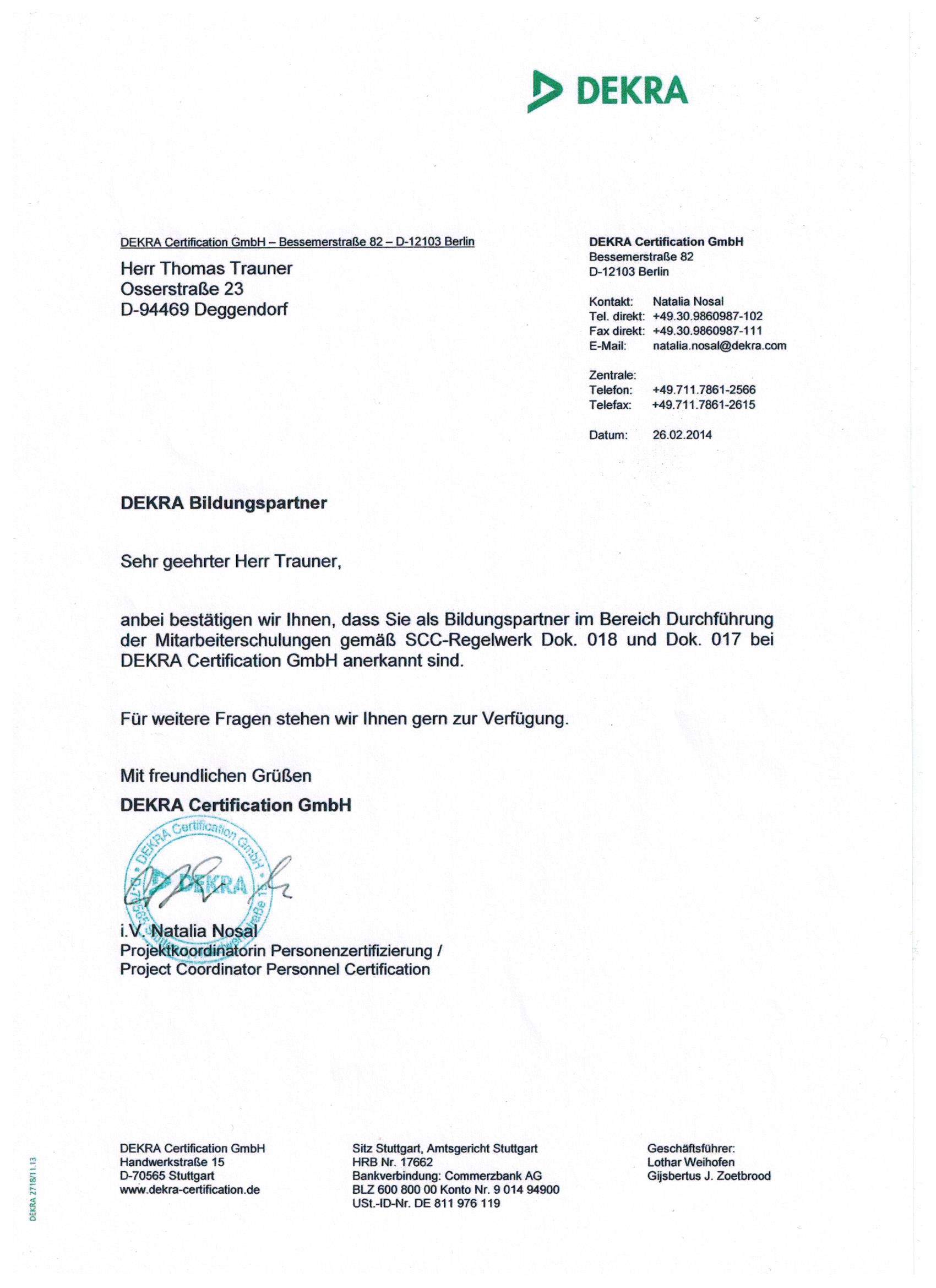 DEKRA Bildungspartner & SCC-Personenzertifizierung